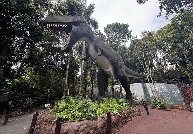 Para quem vai com crianças, o Mundo Dino costuma ser um dos pontos altos da visita. A área temática leva o público a uma viagem pela era dos dinossauros, com réplicas em escala real de espécies como o Tiranossauro rex, o velociraptor e o tricerátops.